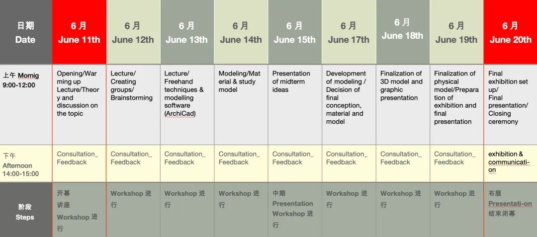 6月11日至6月20日工作坊进行,其中6月16日休息