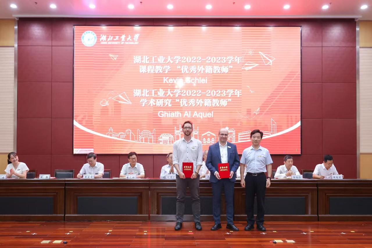 9月8日下午,学校在图书馆报告厅隆重举行庆祝第39个教师节大会暨教师思政“使命”主题报告会。大会对包括“优秀外籍教师”在内的15个集体和41名先进个人进行了表彰。来自美国的Kevin Schlei老师荣获湖北工业大学2022-2023学年课程教学“优秀外籍教师”奖;来自叙利亚的Ghiath Al Aquel博士荣获湖北工业大学2022-2023学年学术研究“优秀外籍教师”奖。