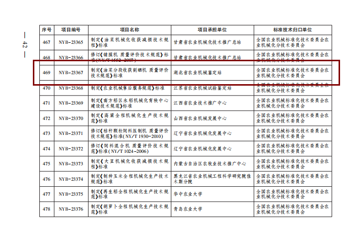 3月27日,由省农业机械鉴定站牵头申报的《油菜分段收获割晒机质量评价技术规范》国家农业行业标准获批立项。作为全国唯一双非高校,省农机工程研究设计院参与获批国家重大科研项目(农机)1项,主持获批湖北省农业农村厅重大项目1项,获批湖北省自然科学基金创新群体。我校农机优势特色重整旗鼓,再创发展新局面。