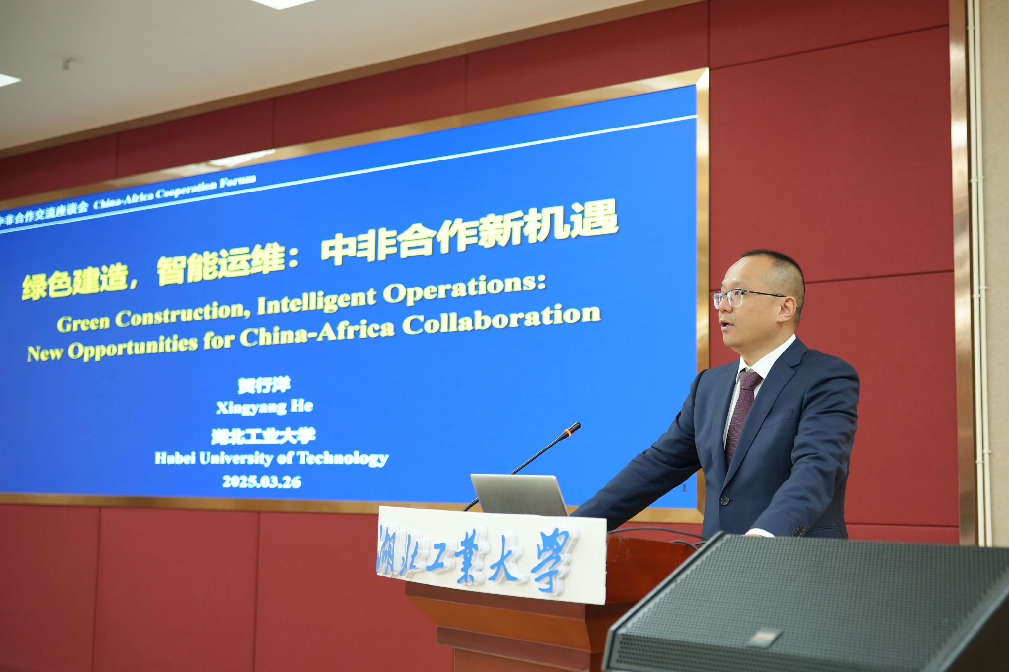 会议主旨发言环节,我校副校长贺行洋以《绿色建造,智能运维:中非合作新机遇》为题作演讲。他着重介绍了学校携手相关企业,在非洲及“一带一路”国家开展土木工程绿色建造领域的合作情况。他指出,非洲大陆是“一带一路”连接亚欧经济圈的重要枢纽,中非合作将为高质量共建“一带一路”注入新动能。依托“中非工业创新合作中心”,我已形成覆盖20多个非洲国家的56个合作伙伴网络,相关合作成果有力推动了中非技术、标准对接互通,促进了工程建设领域创新链和产业链的融合发展。未来,学校将聚焦非洲区域工程建设领域材料、设计、施工、运维产业链发展的迫切需求,深入推进相关合作计划。