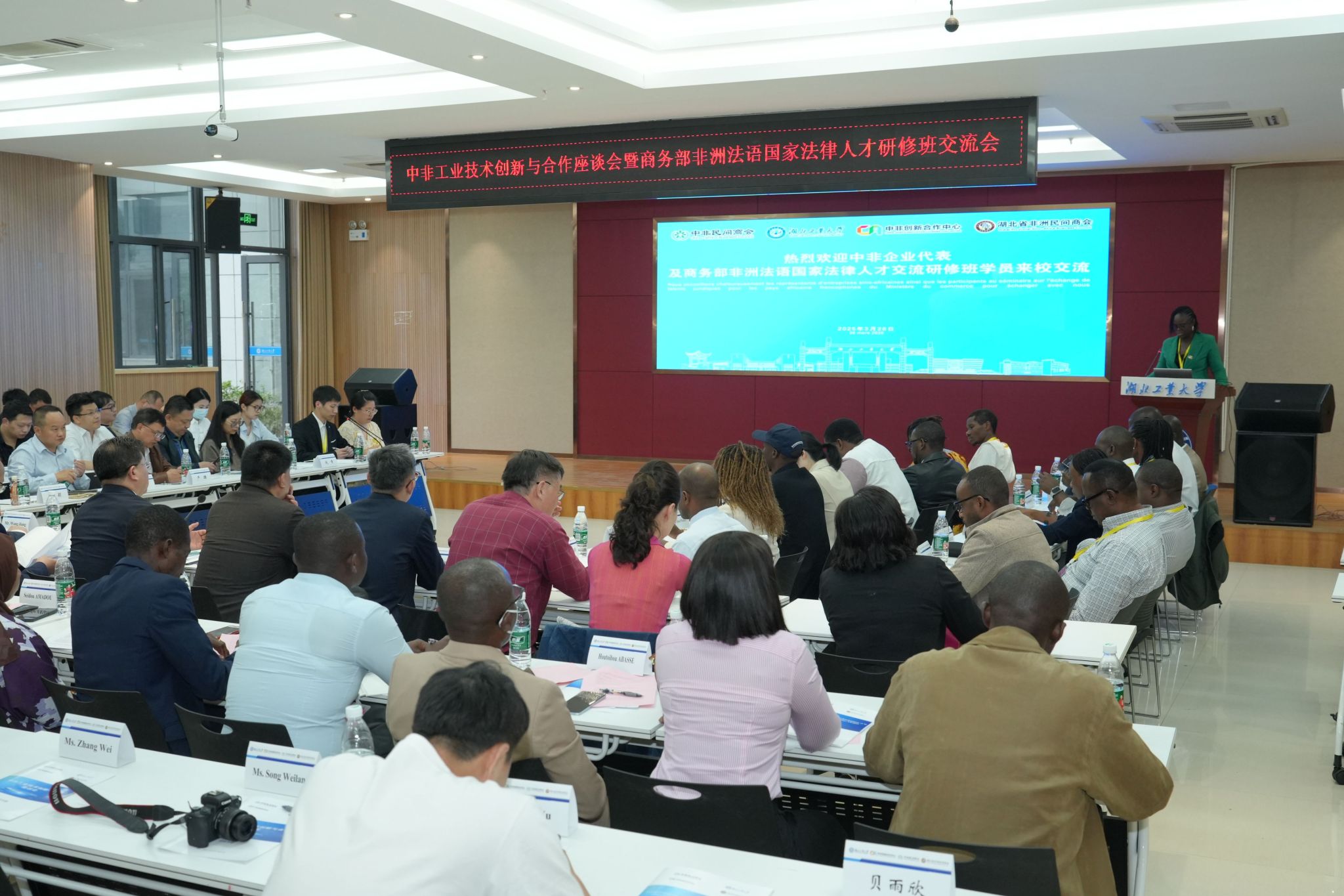 3月26日下午,由中非民间商会、湖北工业大学联合主办的“中非工业技术创新与合作座谈会暨商务部非洲法语国家法律人才交流研修班学员交流会”在学校机械楼一楼会议室隆重举行。会议以“共建中非‘十大伙伴行动’,加速推进中非高质量发展”为主题,围绕绿色建造、食品贸易升级、数字化转型及民间投资等议题展开深度对话,共绘务实合作新蓝图。会议得到了商务部国际商务官员研修学院、中非创新合作中心及湖北省非洲民间商会的大力支持。中非民间商会执行秘书长王江、中非创新合作中心主任张晓、湖北工业大学副校长贺行洋、湖北省非洲民间商会执行会长刘松旺出席会议。中非政企学界专家、学者、企业家代表50余人以及来自十余个非洲法语国家的30余名官员(研修班学员)参加座谈会。