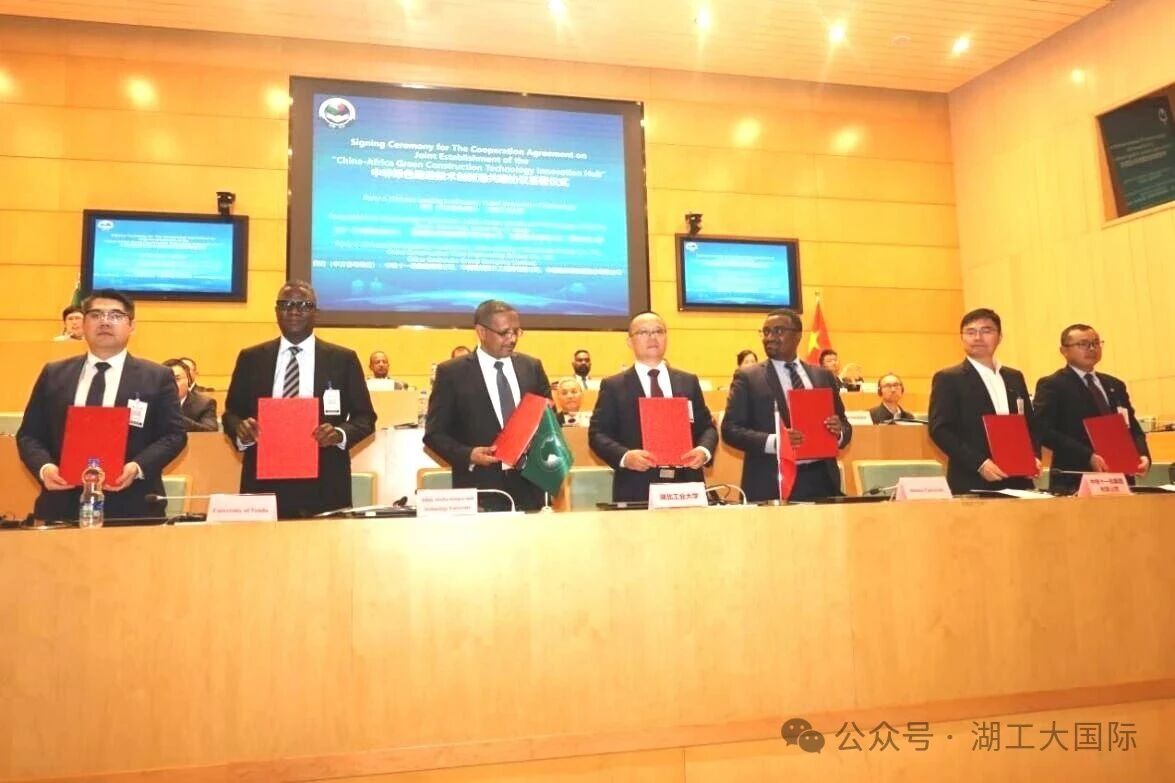 赴亚的斯亚贝巴参加“中非创新活动日”的企业及高校积极响应,中铁十一局、中建三局、葛洲坝集团、南非文达大学、埃塞季马大学等单位与我校和亚的斯亚贝巴科技大学共同签署《中非绿色建造技术创新港共建协议》。