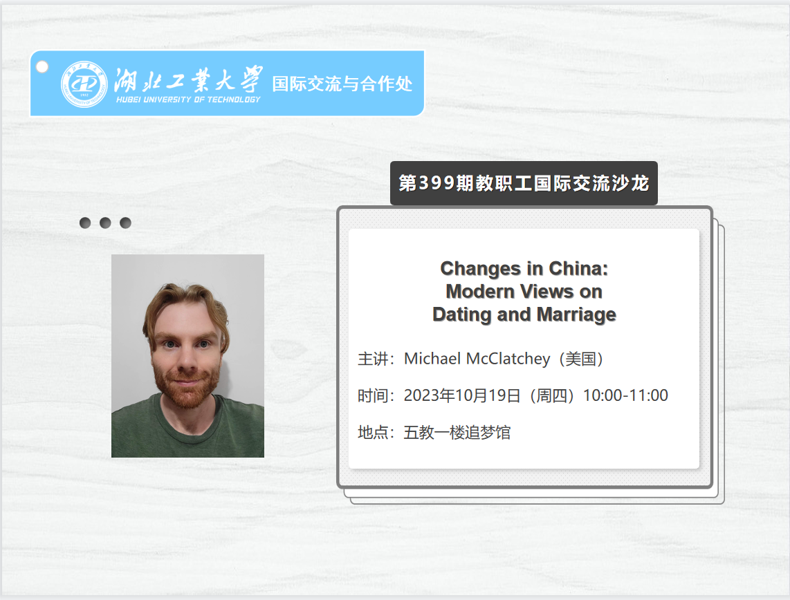 加群时请备注“单位+姓名+工号”,进群后及时按“学院+姓名”格式更名,并添加“湖工大国际”微信公众号,关注相关通知。在不影响正常工作的原则下,全校教职工均可灵活参加沙龙,本沙龙不收取任何费用。