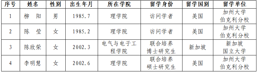 根据国家留学基金委《关于做好2026年创新型人才国际合作培养项目人员申报工作的通知》,经个人申请、所在学院推荐,现将拟申报国家留学基金委2026年创新型人才国际合作培养项目的申请人基本情况公示如下: